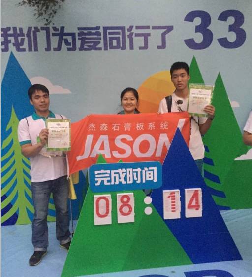 2015年10月17日7時許,壹基金主辦的2015“為愛同行·杭州站”公益健行活動在杭州玉皇山、鳳凰山、西湖群山一帶開拔。此次杭州站是繼去年在深圳鹽田馬拉松之后的又一次愛的活動,賽程共計33公里。愛的路上,杰森與你益起健行,活動與往年不同的是參與“為愛同行·杭州站”山地徒步健行活動和公益籌款;此次為愛同行活動備受華東營銷區經銷商朋友們的大力支持和關注,活動當天籌得善款1100元。杰森石膏板一直致力于社會公益事業和回饋社會,2015年已是杰森連續第四年與壹基金攜手合作。