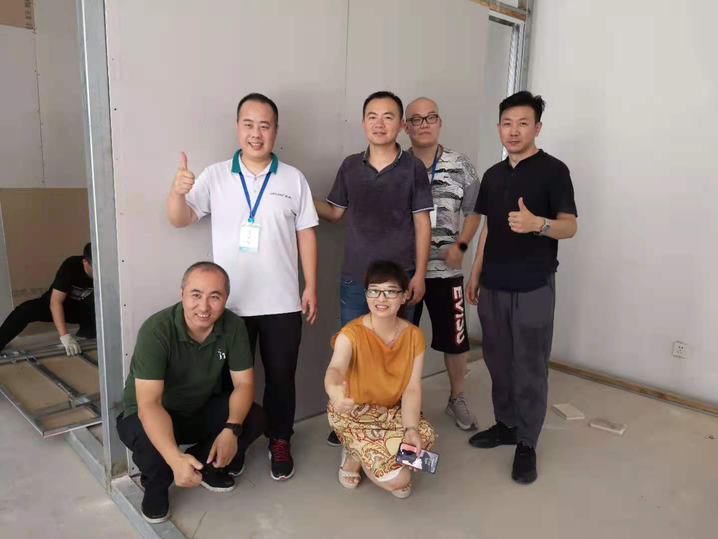 此次培訓活動由系統實操和理論知識培訓兩部分組成。第一天,全員在操作間進行了隔墻、吊頂系統的實操培訓。由東部營銷區技術部唐經理講解施工規范及施工準備,并對參訓人員進行項目分組,分派相應的系統任務。