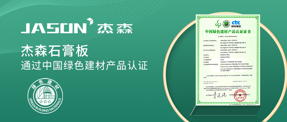 此次“中國綠色建材產品認證證書”的獲得,不僅是對杰森石膏板產品環保、低碳等綠色屬性的肯定,也是對杰森產品質量及品牌環保理念的高度認可,為杰森石膏板進一步開拓綠色建材市場打下堅實基礎。