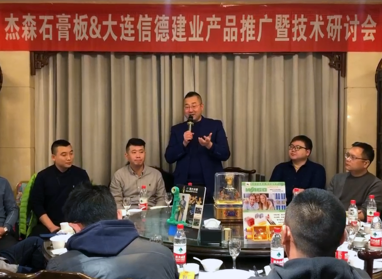 3月3日,由杰森石膏板與大連信德建業聯合主辦的杰森石膏板&大連信德建業產品推廣暨技術研討會在大連十洲云水大酒店隆重舉行。大連信德建業總經理郭士濱、杰森石膏板遼寧大區負責人劉君楠、杰森大連區域負責人蔡元鵬,杰森技術工程師許瑞以及來自大連家裝界部分裝企負責人、行業專家、高級工程師及設計師代表等40余人歡聚一堂,共同探討家裝行業新材料新工藝應用,交流行業新經驗,拓展合作新思路,共謀行業新發展。